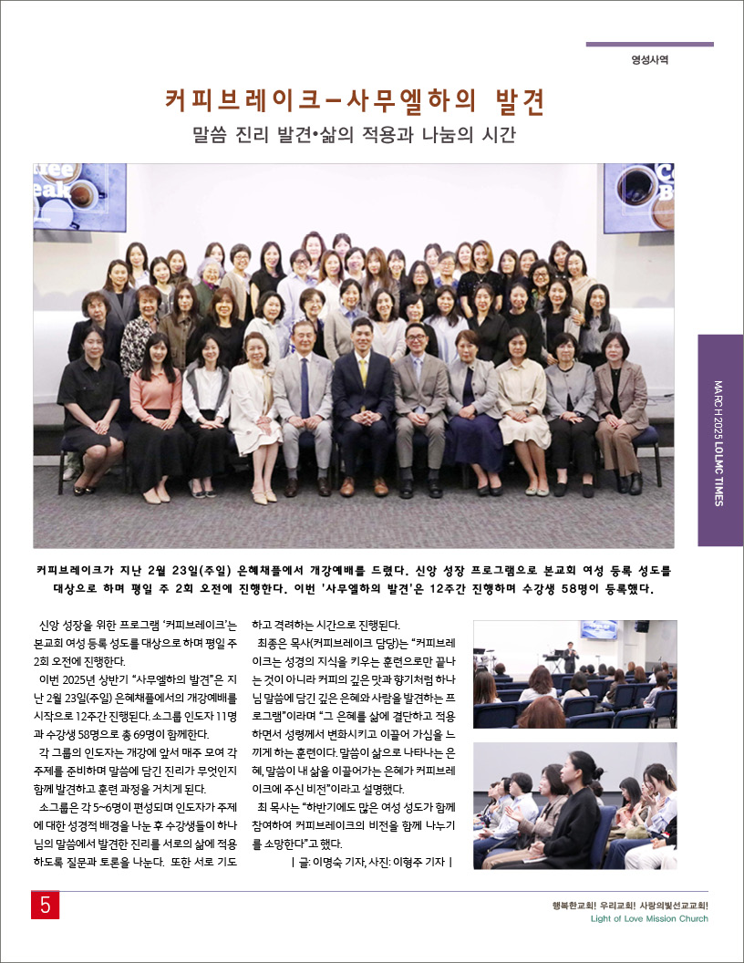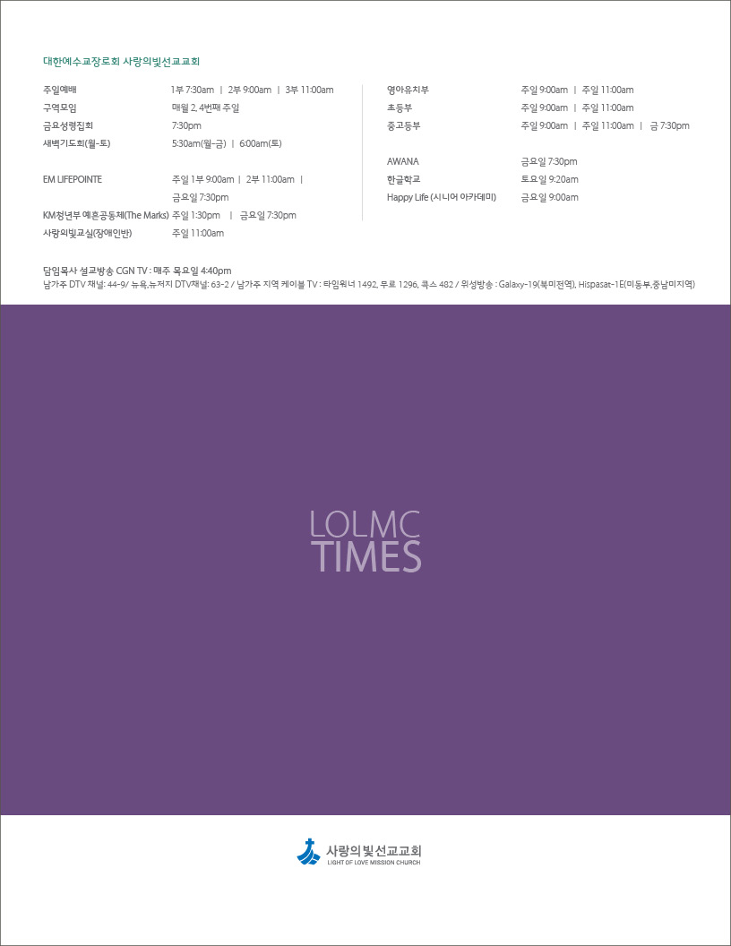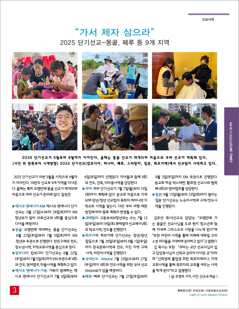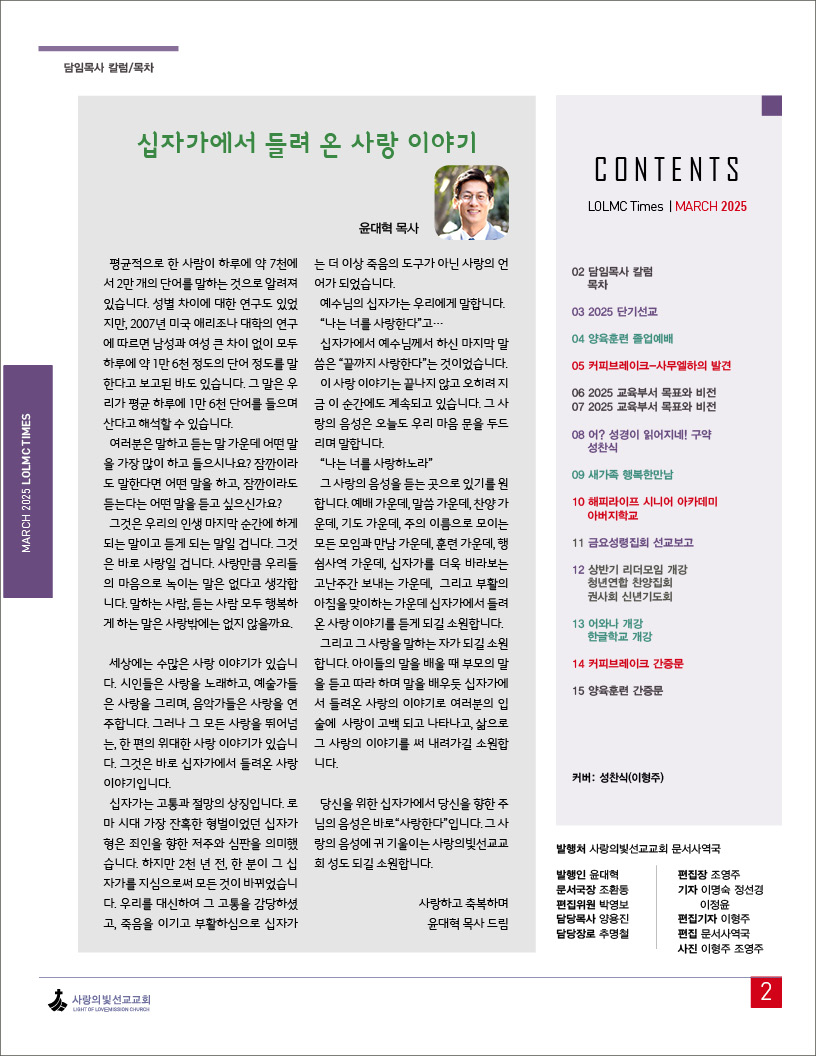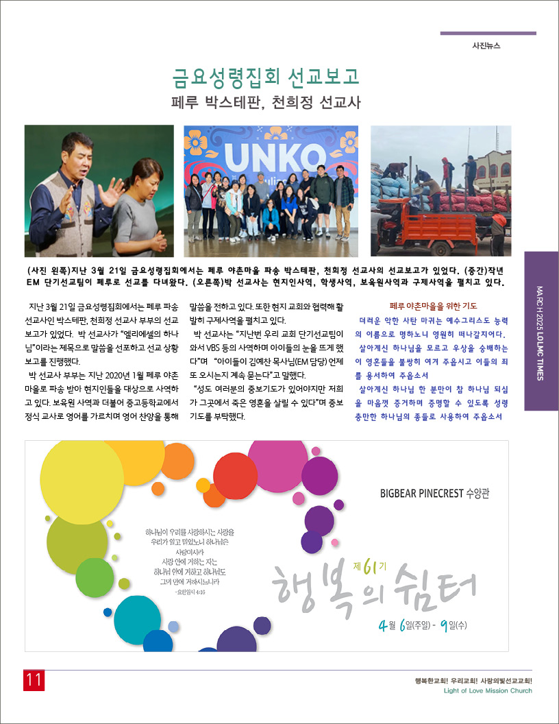 LOLMC Times March 2025 페이지 정보 작성자 사랑의빛선교교회 작성일25-04-01 03:05 댓글0건 관련링크 이전글 다음글 목록 본문 LOLMC Times March 2025 이전글 다음글 목록