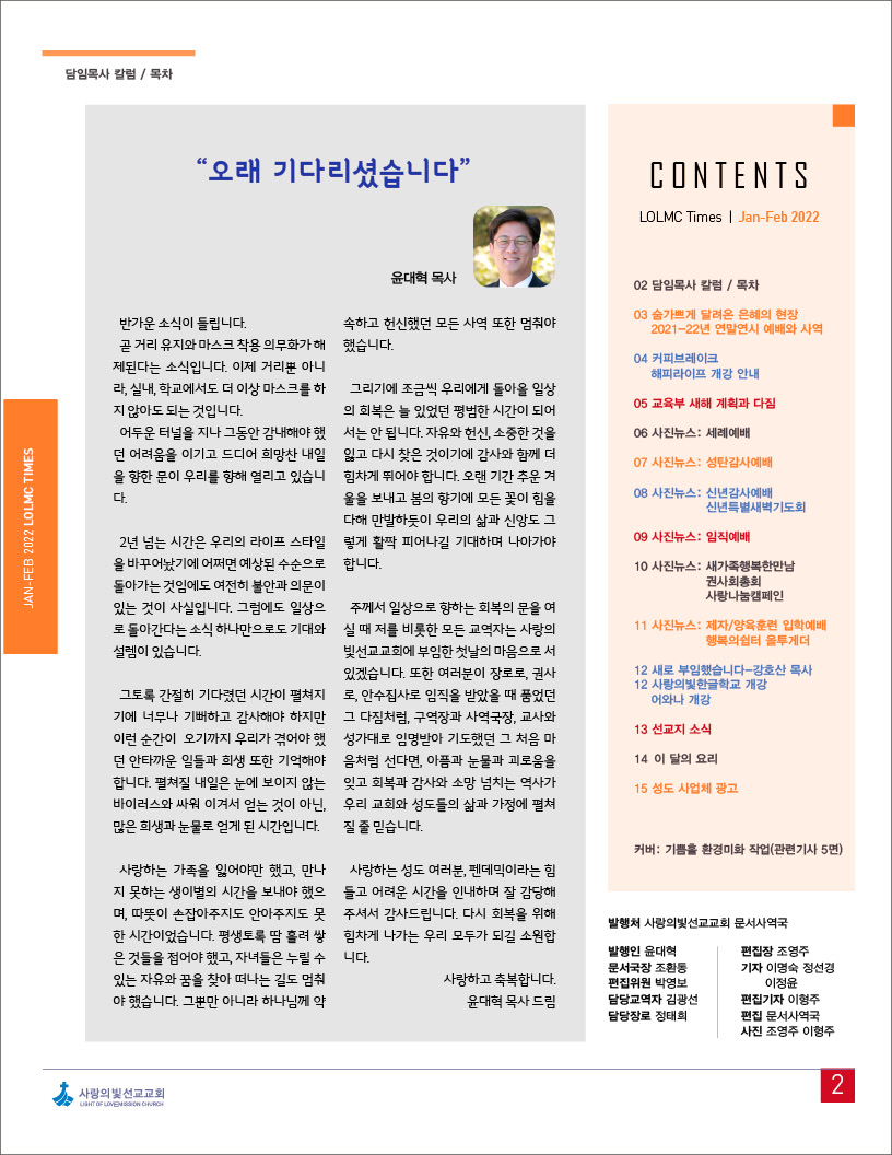 January/February 2022 페이지 정보 작성자 문서사역국 작성일22-03-07 02:29 댓글0건 관련링크 이전글 다음글 목록 본문 January/February 2022 이전글 다음글 목록