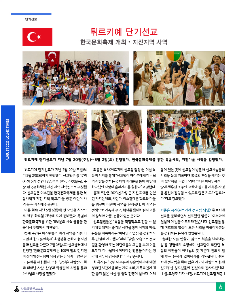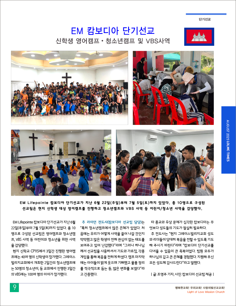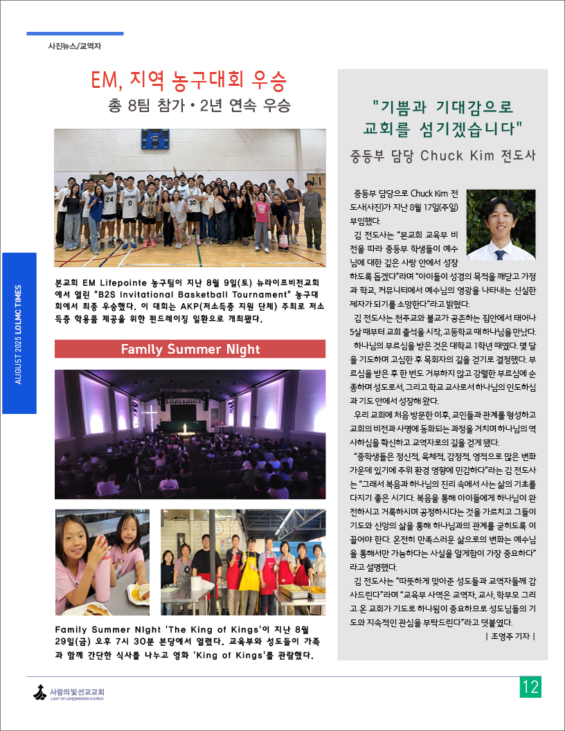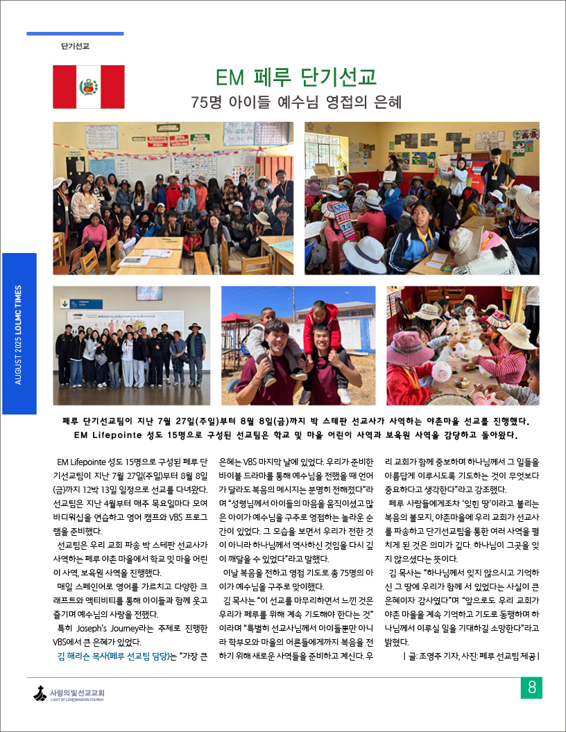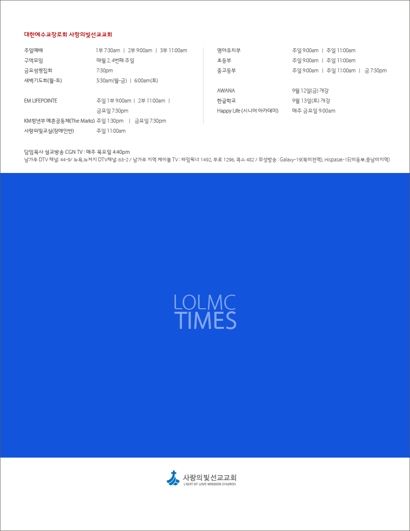 LOLMC Times August 2025 페이지 정보 작성자 사랑의빛선교교회 작성일25-09-12 02:05 댓글0건 관련링크 이전글 다음글 목록 본문 LOLMC Times August 2025 이전글 다음글 목록