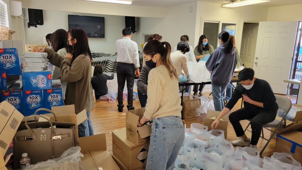 2021년 12월 12일(주일) 사랑나눔캠페인에 사용할 패키지 작업을 성도들과 중고등부 학생들이 함께 했습니다.