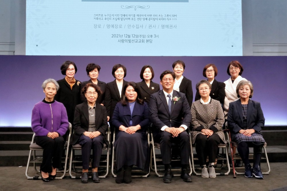 시무장로와 명예장로, 안수집사, 권사, 명예권사 등 총 24명의 임직자가 교회와 성도를