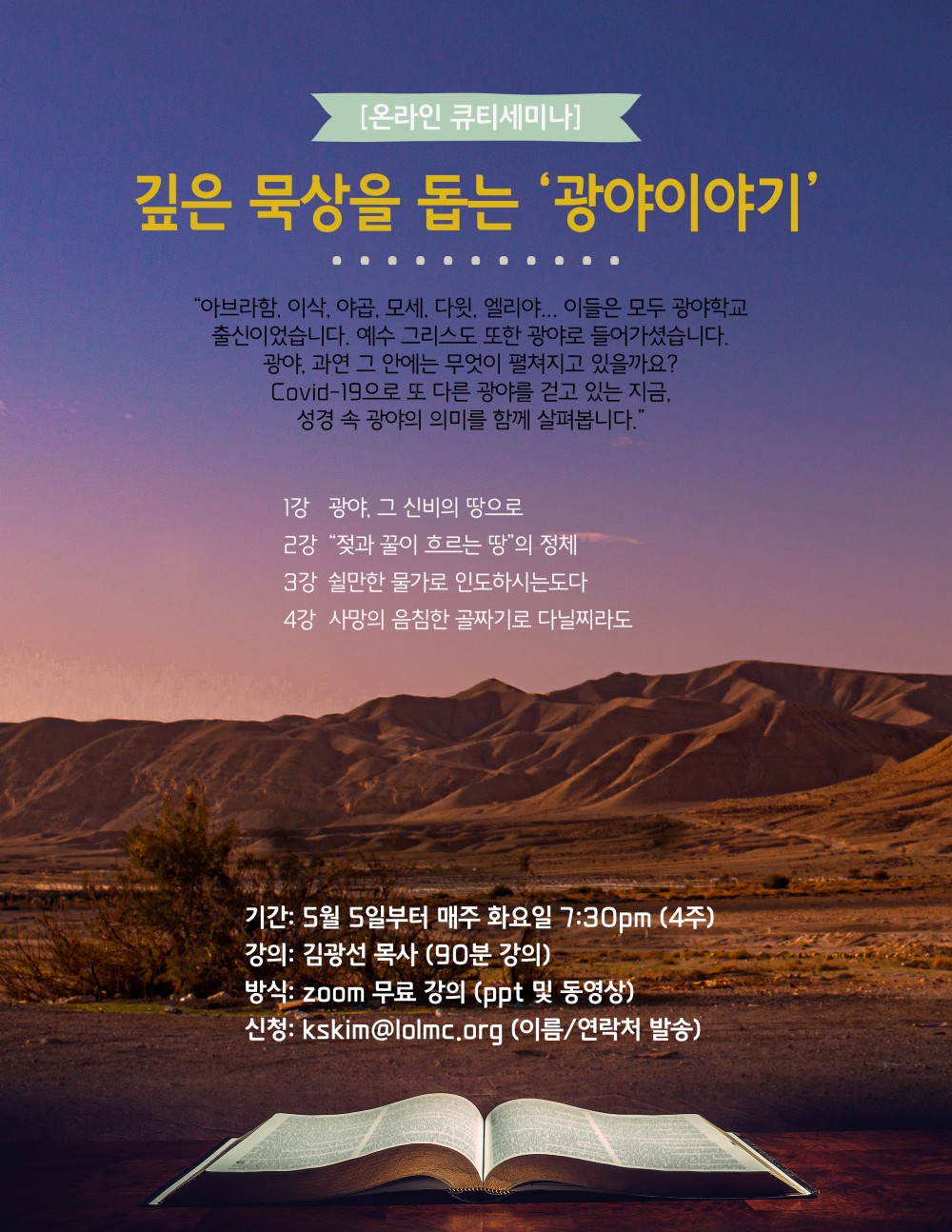 2020년 5월 5일부터 5주간 동안 온라인 큐티세미나 <광야이야기>가 진행됐습니다.