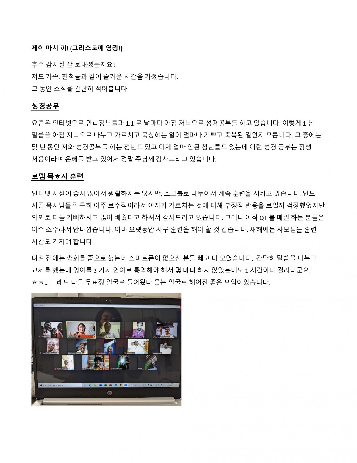 2021년 12월 서규희 선교사님 기도편지입니다. 페이지 정보 작성자 김세업 작성일21-12-31 03:39 댓글0건 관련링크 이전글 다음글 목록 본문 2021년 12월 서규희 선교사님 기도편지입니다. 이전글 다음글 목록