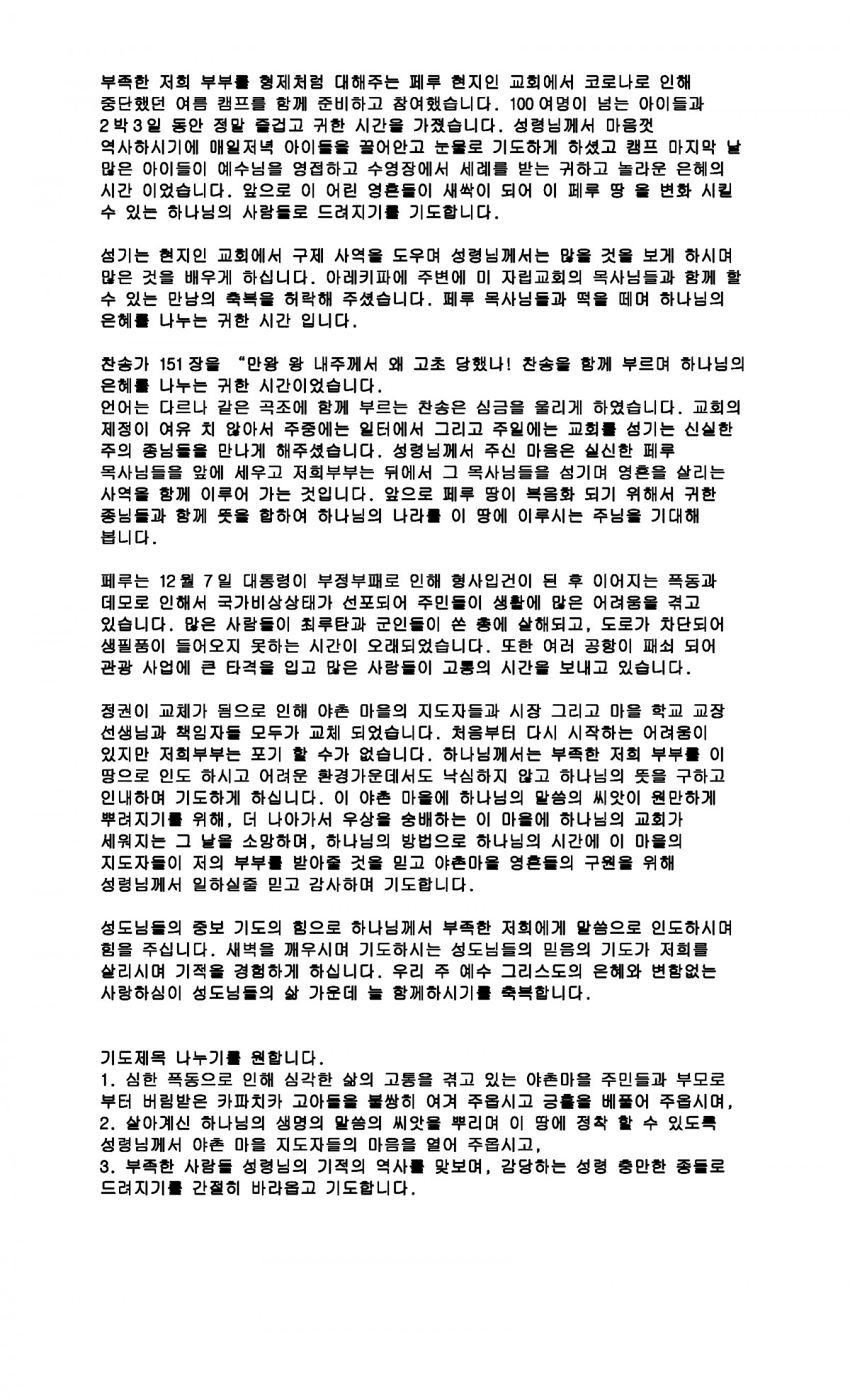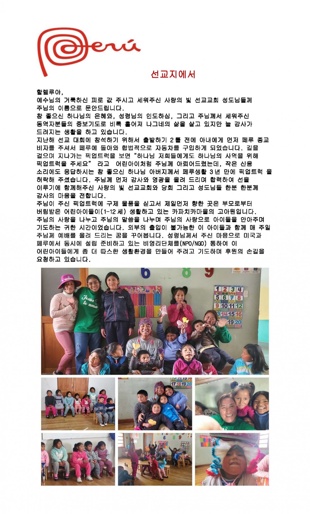 2023년 3월 페루 박스테판, 천희정 선교사 기도제목입니다.