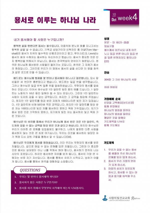 10월 4주차 가정예배