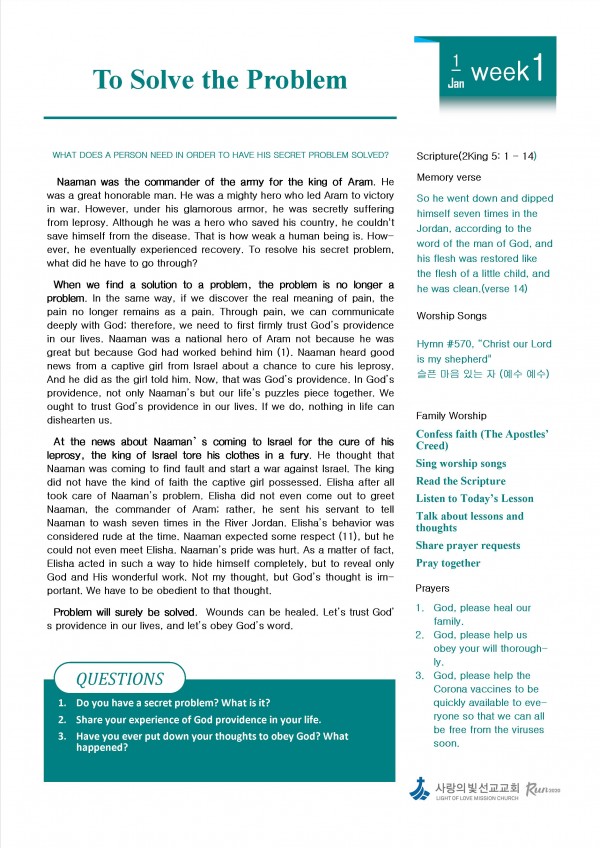 1월 1주차 가정예배