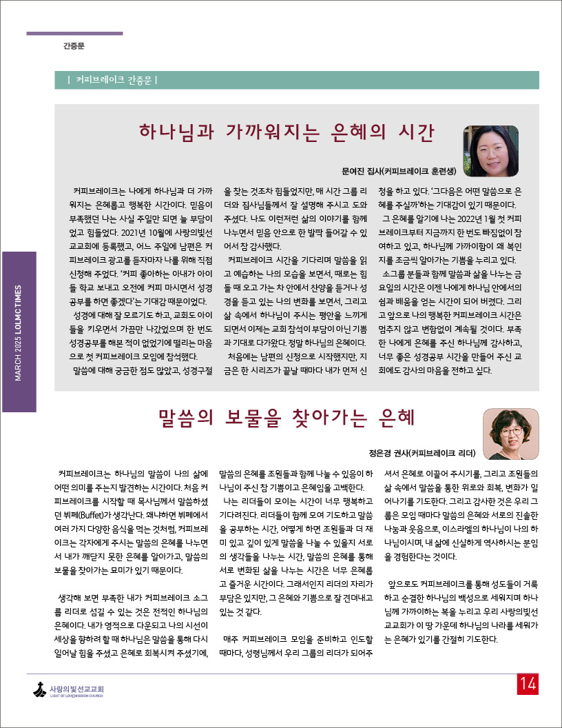 LOLMC Times March 2025 페이지 정보 작성자 사랑의빛선교교회 작성일25-04-01 03:05 댓글0건 관련링크 이전글 다음글 목록 본문 LOLMC Times March 2025 이전글 다음글 목록