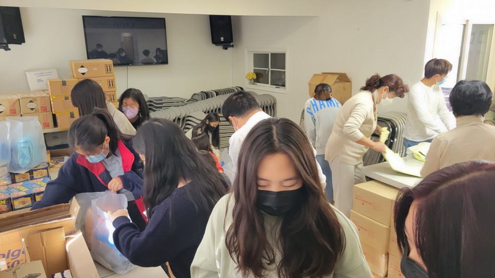 2021년 12월 12일(주일) 사랑나눔캠페인에 사용할 패키지 작업을 성도들과 중고등부 학생들이 함께 했습니다.