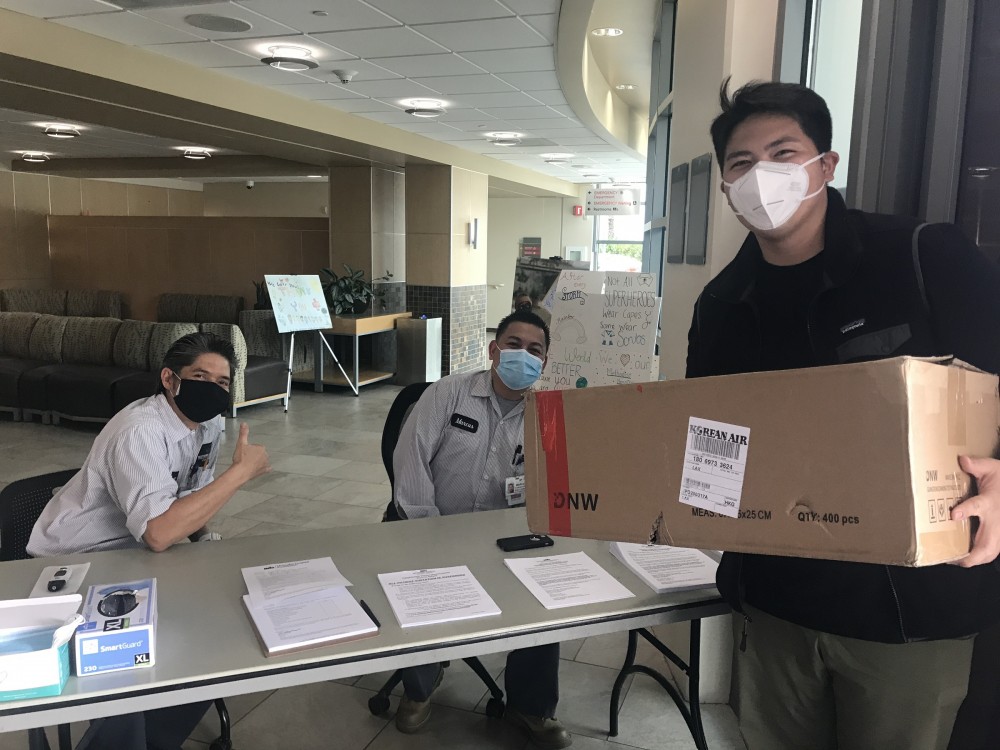 2020년 4-5월 코로나 팬데믹 관련 지역사회 나눔사역의 일환으로 Huntington Hospital, Methodist Hospital에