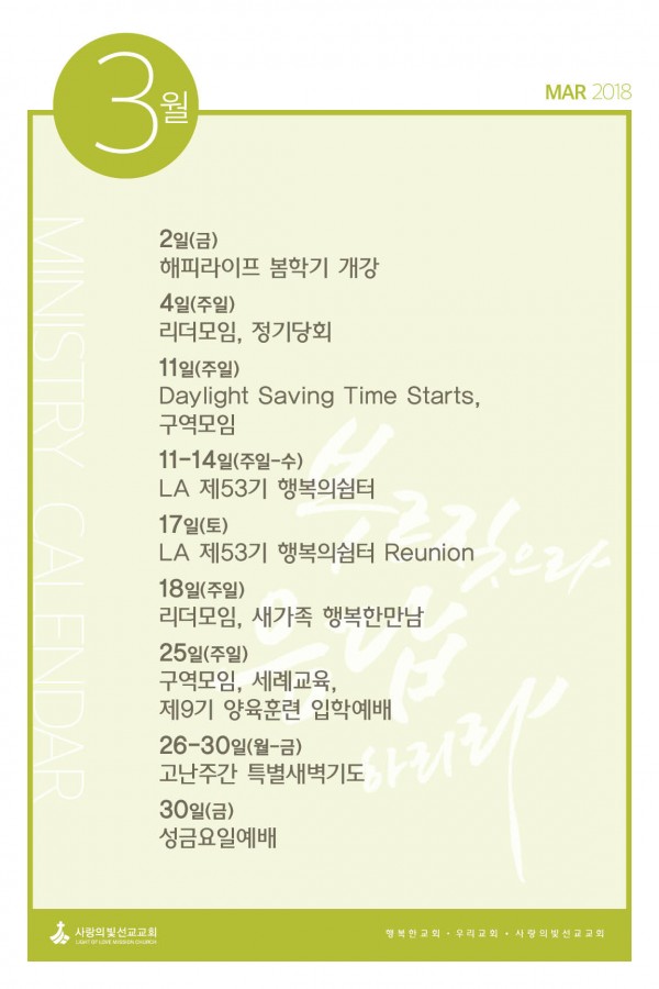 2018 3월 사역 캘린더