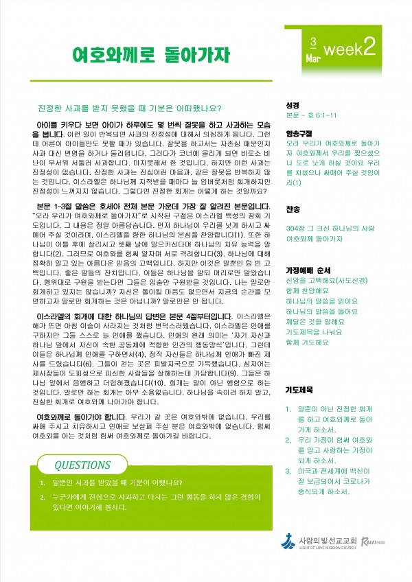 3월 2주차 가정예배
