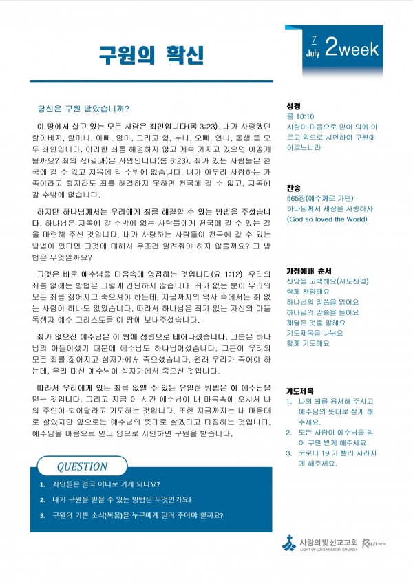 7월 2주차 가정예배