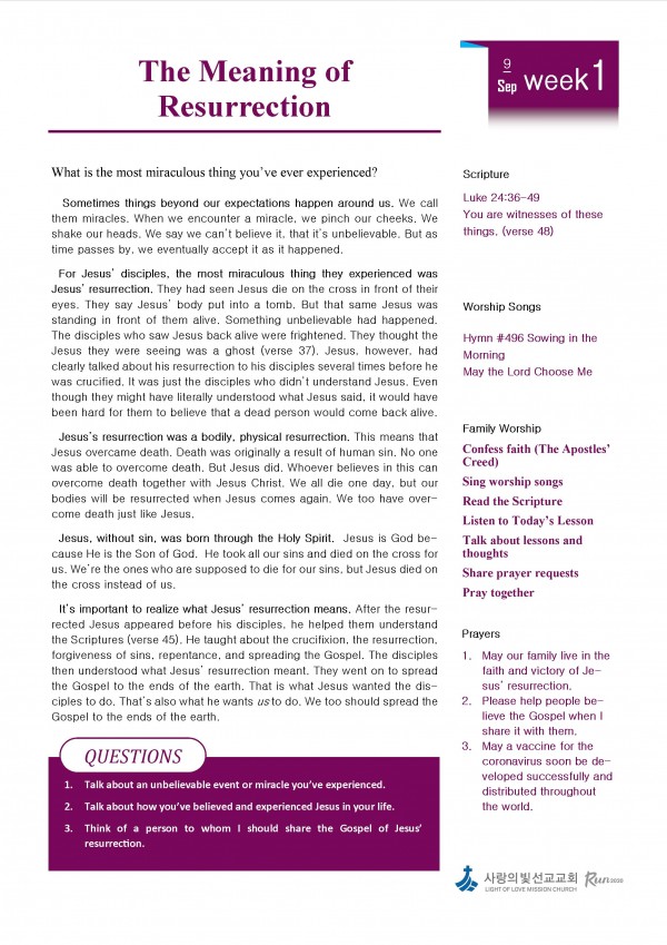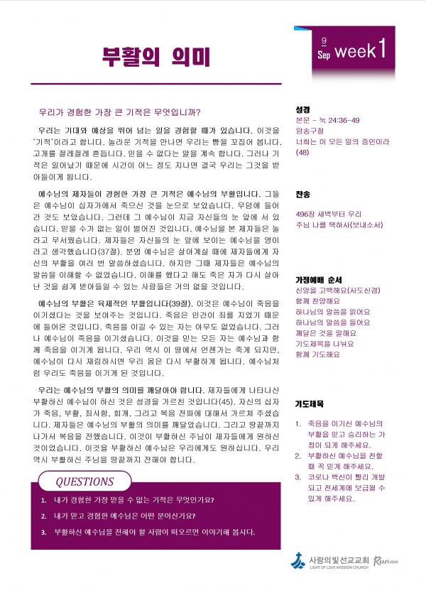 9월 1주차 가정예배